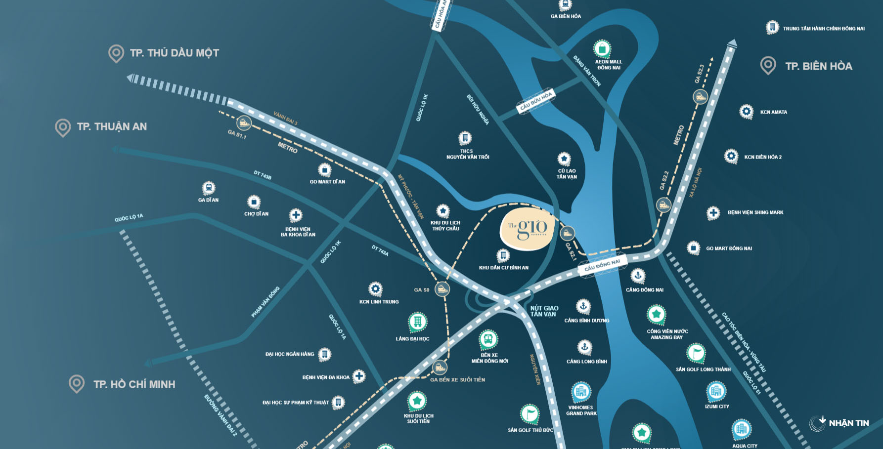 Located on Bui Thi Xuan Street, Tan Binh Ward, Di An City, Binh Duong Province, The Gió Riverside enjoys a rare position at the gateway between Ho Chi Minh City and Binh Duong. Residents can easily reach downtown Saigon, Thu Duc, or Bien Hoa within minutes, while enjoying the fresh riverside atmosphere along the Đồng Nai River.