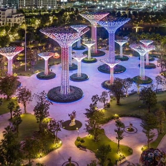 - VinBus & GSM electric bus system: Fully integrated throughout the township, connecting residential zones, shopping centers, and metro stations. Dozens of EV charging stations are installed across the project, promoting sustainable and green mobility.